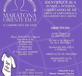 – Condutora de Maratonas com foco nos temas: “Emoções”, “Script de Vida”, “Identidade”, “Oriente em Si”, “Corporal”, “Casal” e “Psicossomática”.